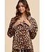 Elevate your sleepwear with this luxurious Leopard Satin Pajama Shirt. Crafted from smooth, silky satin, it features a bold leopard print for a chic yet timeless look. Striped detailing at the collar, cuffs, and waistband adds a modern contrast, while refined contrast piping enhances the overall design. Finished with a classic button-down front and a functional pocket detail, this shirt offers a relaxed, loose fit for effortless comfort and style—perfect for lounging or a stylish night in.