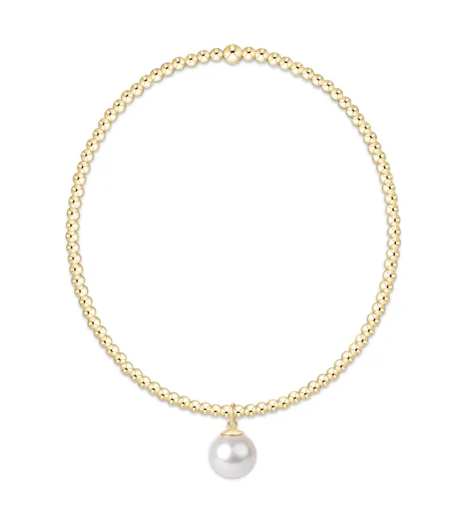 - Made with 2mm, 14kt gold-filled beads and classic crystal pearl 8mm charm.