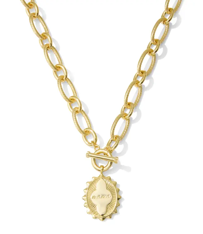 Show appreciation for the moms in your life with the Mama Gold Link and Chain Necklace. This thoughtful style features a vintage-inspired coin pendant with an engraved Abbie design and a toggle closure. Perfect for every day, she can layer this piece with her favorites for a personal touch.