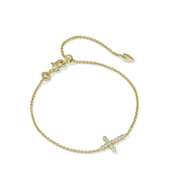 Keep what matters close to you with the Cross Gold Crystal Delicate Chain Bracelet. This meaningful style features a cross symbol crafted from white cubic zirconia on a dainty, adjustable chain. Subtle and sparkly, this personal accessory will become a daily favorite.