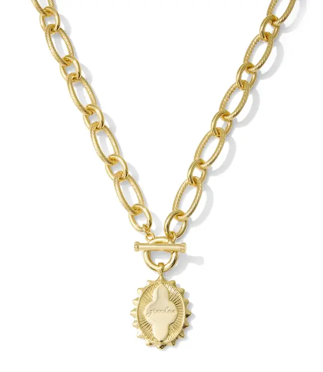 A reminder of your precious love, the Grandma Gold Link and Chain Necklace is a meaningful style that features a coin pendant with engraved script, an Abbie-inspired design, and a chic toggle closure. With its sweet (and stylish!) design, this piece will pair well with her daily staples.