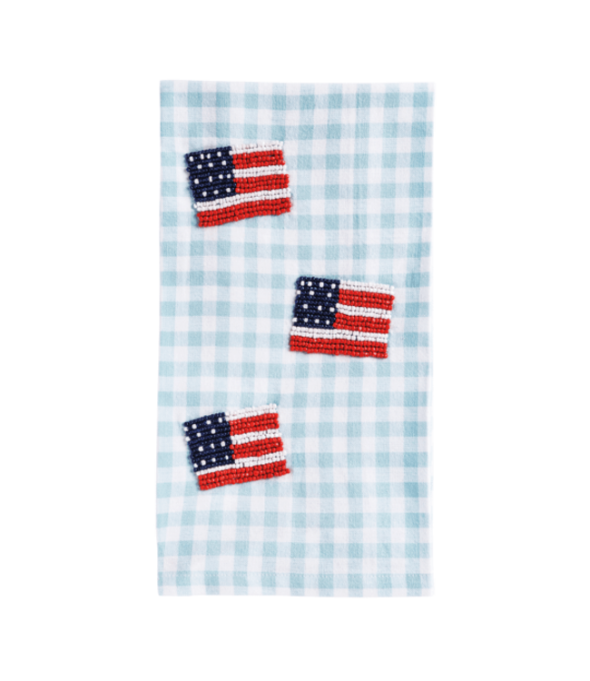 Add a patriotic pop to your home with the Flag Beaded Americana Towel. Featuring yarn-dyed cotton and intricate beaded icons, this soft, durable towel brings style and function to any kitchen or bathroom. Perfect for everyday use or festive decorating.