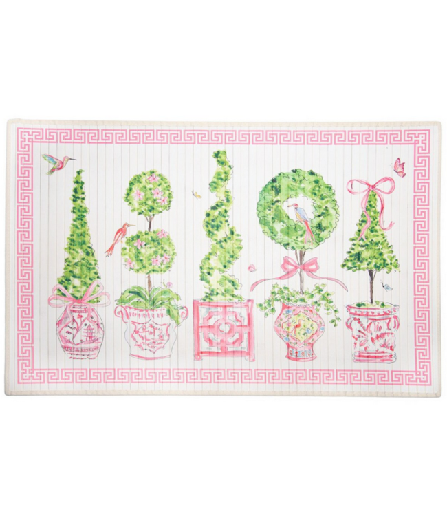 This Pink Boxwood Bamboo Mat adds a hint of sophistication to your spring décor and is ideal for anyone who adores the color pink! Please note that these bamboo mats are intended for indoor use only.