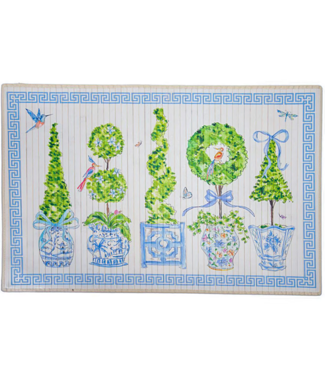 This Blue Boxwood Bamboo Mat adds a touch of elegance to your spring décor and is ideal for fans of the classic blue and white style! Please remember that these bamboo mats are meant for indoor use only.