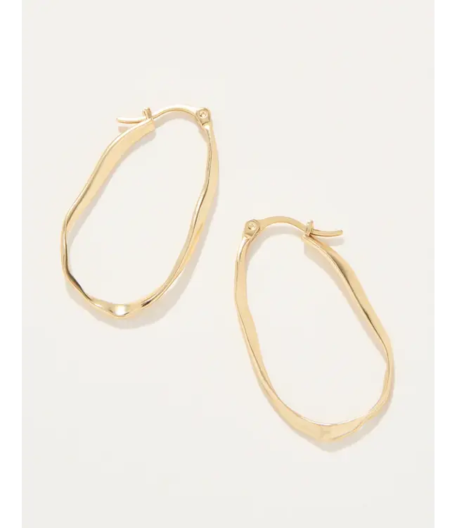 18kt matte gold plating delicately twists into these oval shaped Isle of Hope Hoop Earrings. These earrings are lightweight and ready for everyday.