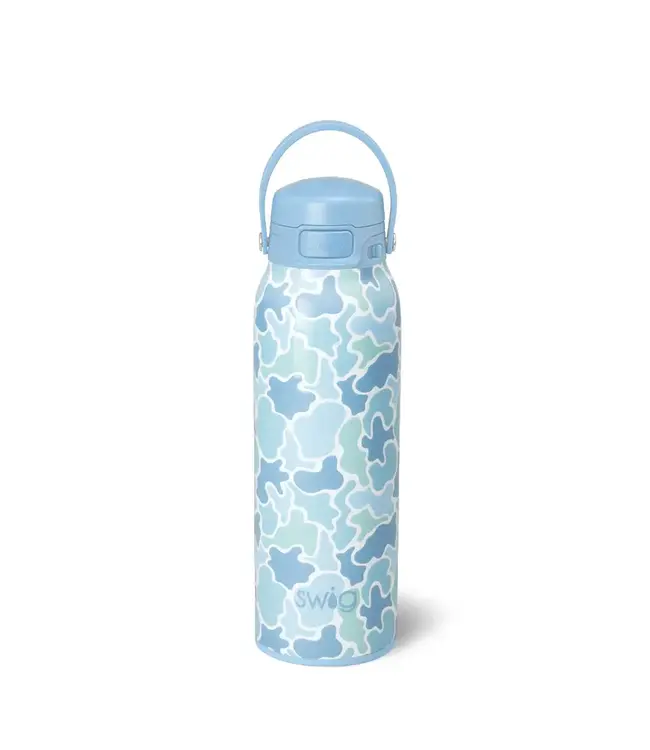 This innovative push-button cap with locking mechanism makes hydrating on the go leak-free and worry-free. Pop open the top to easily sip and flip open the cap to refill without the inconvenience of twisting it off. The innovative lid design gives you the option to sip freely or chug quickly. Grab-and-go flex handle is convenient for carrying on hikes and hooking in lockers.