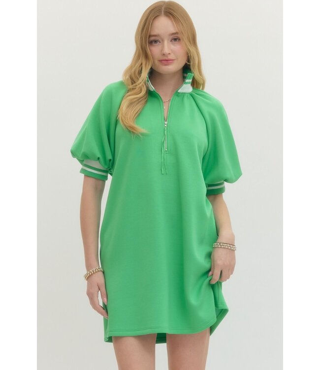 The Annette Green Dress is sporty-chic with the cutest girly twist. This vibrant mini features a sleek front zipper and playful multicolor ribbed trim that adds the perfect pop of contrast. The flattering knit fabric hugs just right while keeping things comfy and lightweight. Finished with side pockets for an easy, everyday feel, this non-sheer mini is your go-to for casual days when you still want to look effortlessly put together.