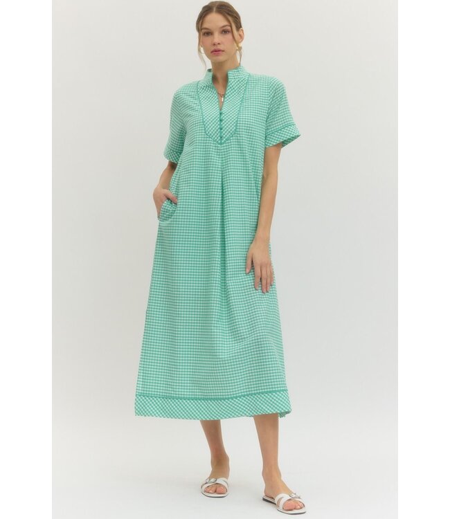 The Desi Gingham Midi Dress is the definition of sweet summertime charm. Available in the prettiest mint or pink, this darling midi features a classic gingham print that feels fresh and feminine. Buttons at the chest add a touch of vintage-inspired detail, while subtle side slits give it an easy, breezy movement. Flowy, flattering, and effortlessly girly, this is the kind of dress you’ll reach for all season long.