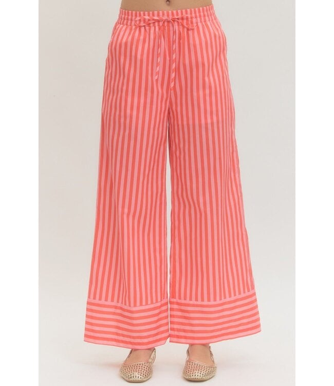 Easy, breezy, and effortlessly chic—these Kylee orange striped pants are made for sunny days and laid-back moments. The wide-leg silhouette flows beautifully, while the elastic waistband with drawstring keeps the fit comfy and flattering. Finished with side pockets and a lightweight woven feel, they’re the perfect mix of relaxed and put-together.