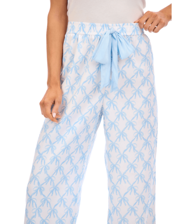 Lounge in style and comfort with these soft 100% polyester pants, featuring elegant piping, an elastic waist, and a charming bow tie. With a relaxed fit and a 29-inch inseam (size small), they’re perfect for cozy nights or lazy mornings!