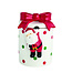The Bow Santa Cookie Jar is a charming holiday kitchen addition, made from hand-painted stoneware. Featuring a whimsical hanging Santa and a removable bow lid for easy access, it keeps treats fresh. At 8 1/2" tall and 5 1/2" in diameter, it’s perfect for storing cookies or candies. With vibrant colors and intricate details, this festive jar makes a delightful gift or cherished keepsake for your holiday traditions.