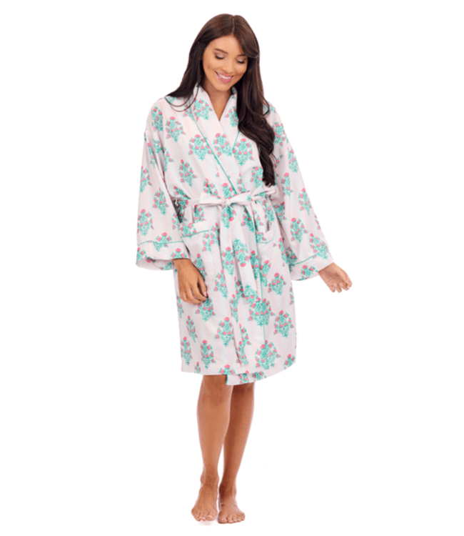 Wrap yourself in soft, luxurious 100% polyester with this elegant block print robe. Featuring long sleeves, piped edges, practical waist pockets, and a removable tie for a customizable fit, it offers comfort and style for lounging at home or adding warmth on cooler days. One size fits most.