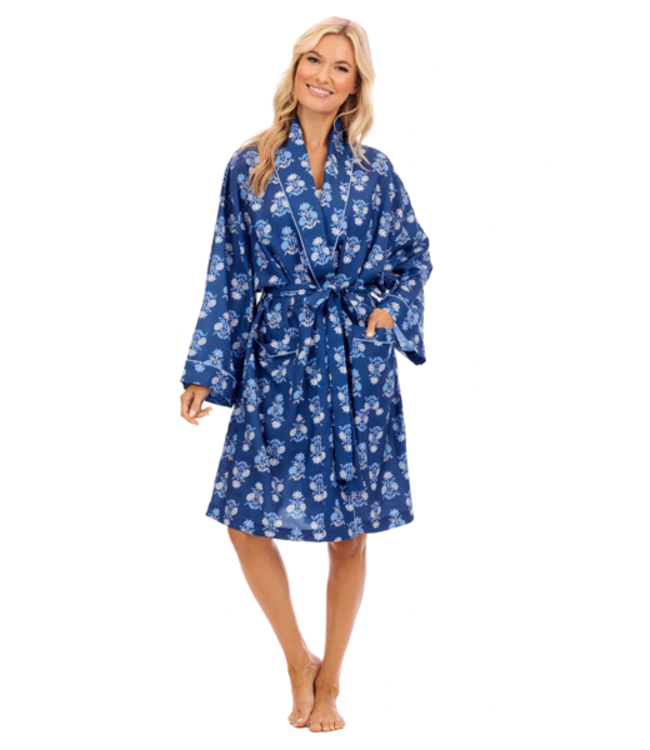 Wrap yourself in comfort and elegance with this soft, lightweight 100% polyester robe. Featuring a rich navy floral print, piped edges, long sleeves, removable tie, and convenient waist pockets, it offers a customizable fit and practical style. One size fits most—perfect for lounging or adding a touch of sophistication to your morning routine!