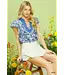 Julie Blue Abstract Top is a bold yet feminine statement piece designed to stand out. Featuring an eye-catching abstract floral print, it’s styled with a flattering split V-neckline accented by contrast trim for a polished touch. Soft flutter sleeves with contrast edging add a delicate, airy feel, while the rounded hemline creates an easy, flattering fit. Lightweight and unlined, it’s perfect for elevating your everyday look with a pop of color and charm.