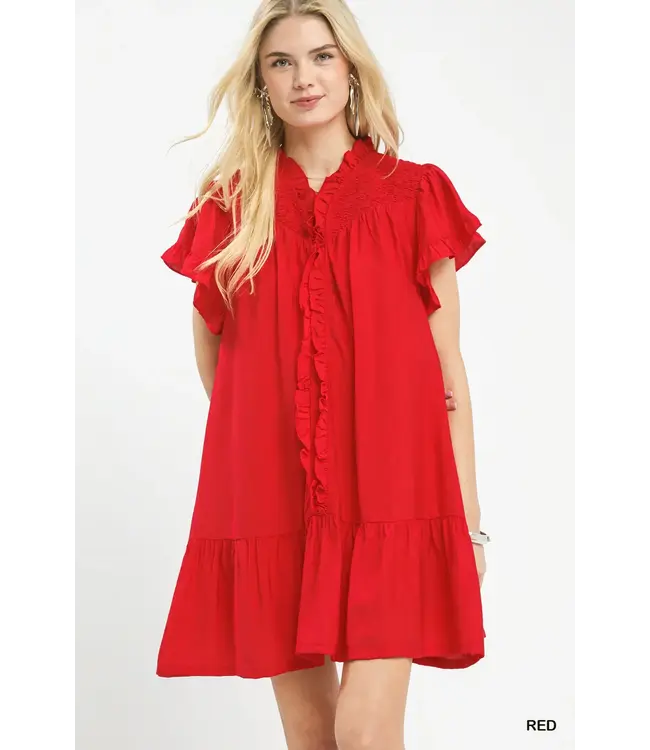 Turn heads in the Sharon Red Babydoll Dress! This flirty mini features a smocked bodice, darling flutter sleeves, and the sweetest tiered ruffle hem. With delicate lace trim, a ruffled split neckline, and hidden side pockets, it’s the perfect mix of playful and pretty.